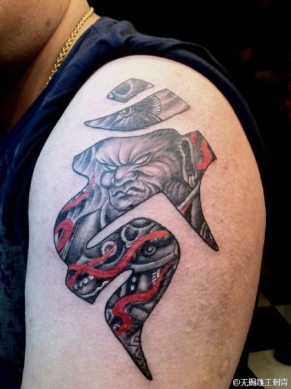 一款时尚很酷的梵文与不动明王纹身图案_梵文纹身图案大全_纹身图吧