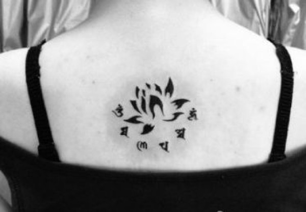 背部莲花梵文纹身图片_梵文纹身图案大全_纹身图吧