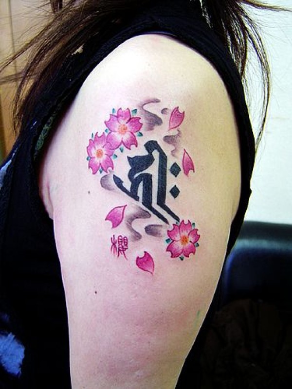 武汉纹身培训网大臂图腾梵文樱花纹身图案图_梵文纹身图案大全_纹身图吧