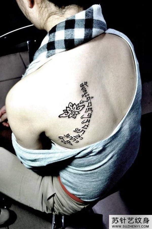 背部莲花梵文纹身图片_梵文纹身图案大全_纹身图吧