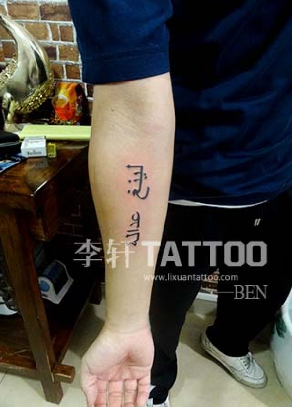 臂膀上梵文字体图案纹身隐秘的梵文碑文图案纹_梵文纹身图案大全_纹身图吧