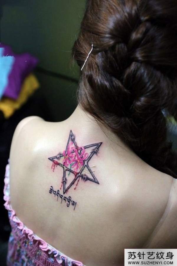 女孩子背部莲花梵文纹身图片_梵文纹身图案大全_纹身图吧