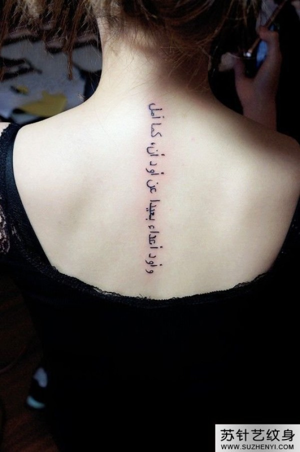 女子后背精致完美梵文刺青_梵文纹身图案大全_纹身图吧