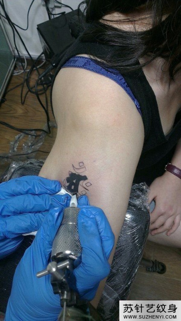 臂膀上梵文字体图案纹身隐秘的梵文碑文图案纹_梵文纹身图案大全_纹身图吧