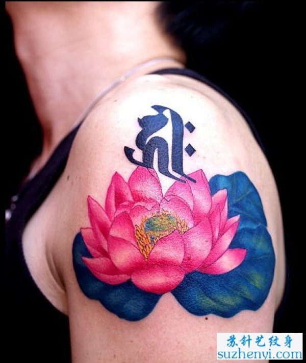 背部莲花梵文纹身图片_梵文纹身图案大全_纹身图吧