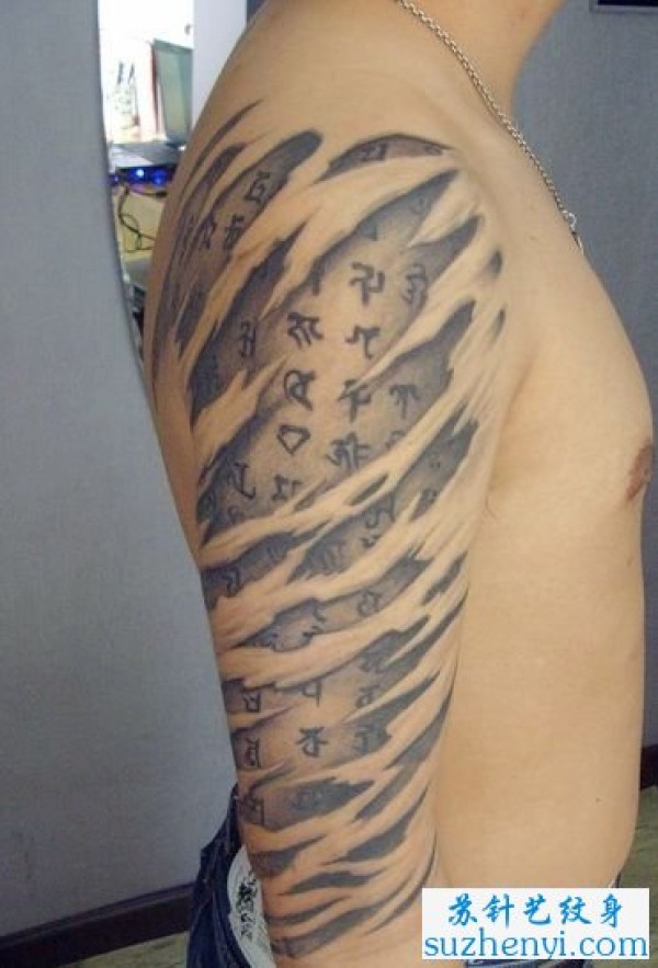 经典的撕皮效果梵文纹身图案_梵文纹身图案大全_纹身图吧
