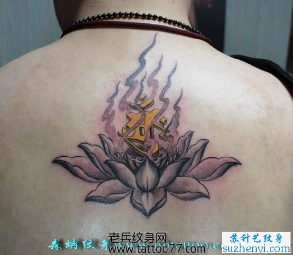 背部莲花梵文纹身图片_梵文纹身图案大全_纹身图吧
