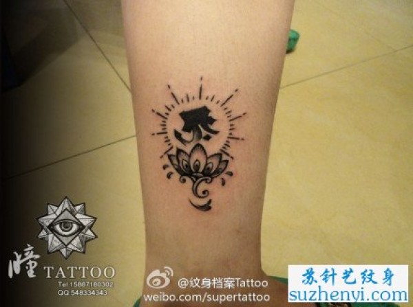 腿部莲花与梵文纹身_梵文纹身图案大全_纹身图吧
