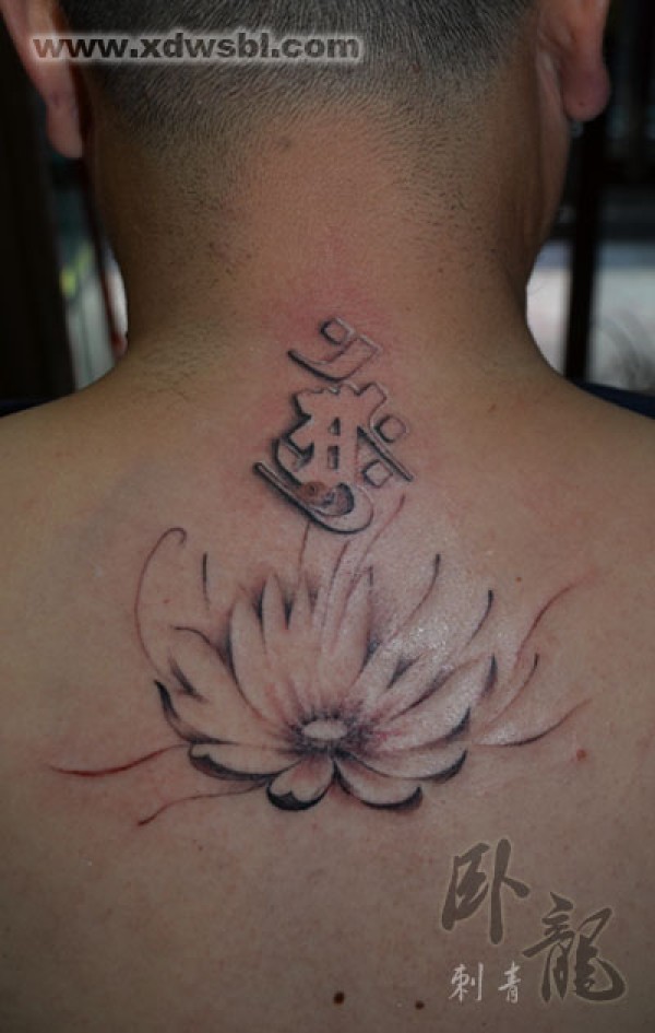 一幅背部梵文莲花纹身图片_梵文纹身图案大全_纹身图吧