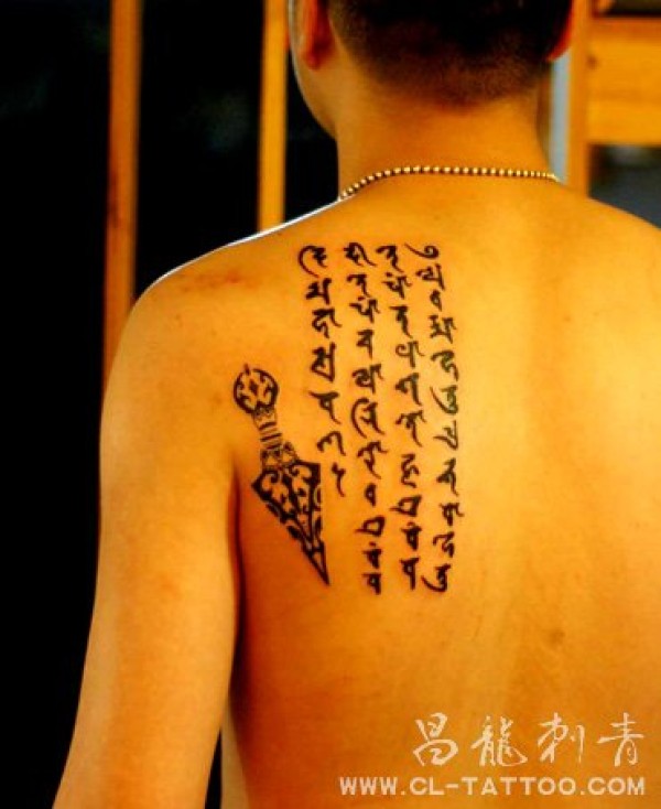 一幅背部烙印梵文文身图片由_梵文纹身图案大全_纹身图吧