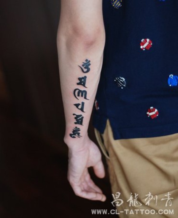 臂膀上梵文字体图案纹身隐秘的梵文碑文图案纹_梵文纹身图案大全_纹身图吧
