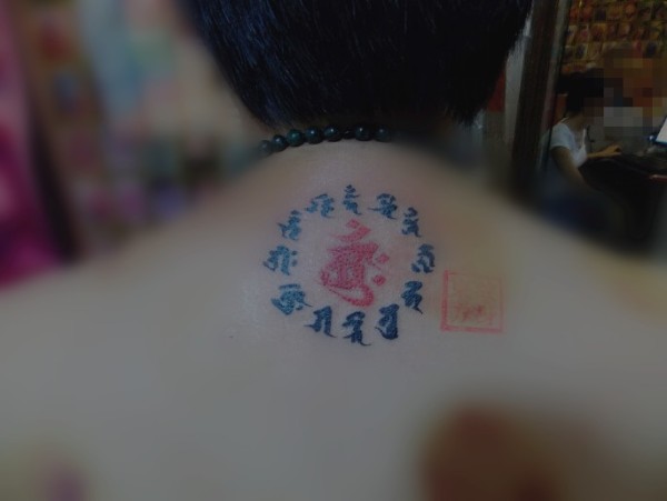 后脖子梵文佛号纹身_梵文纹身图案大全_纹身图吧