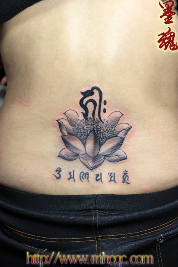 女孩子背部莲花梵文纹身图片_梵文纹身图案大全_纹身图吧