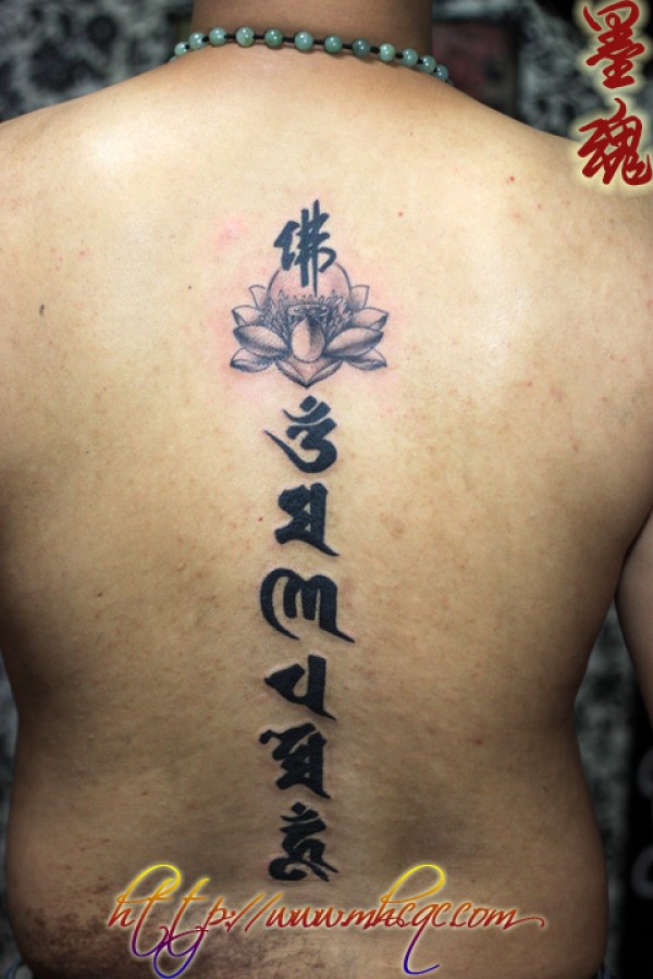 一幅背部梵文莲花纹身图片_梵文纹身图案大全_纹身图吧