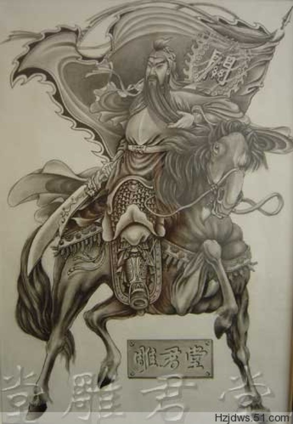 马背上的关羽纹身素材图_关公纹身图案大全_纹身图吧