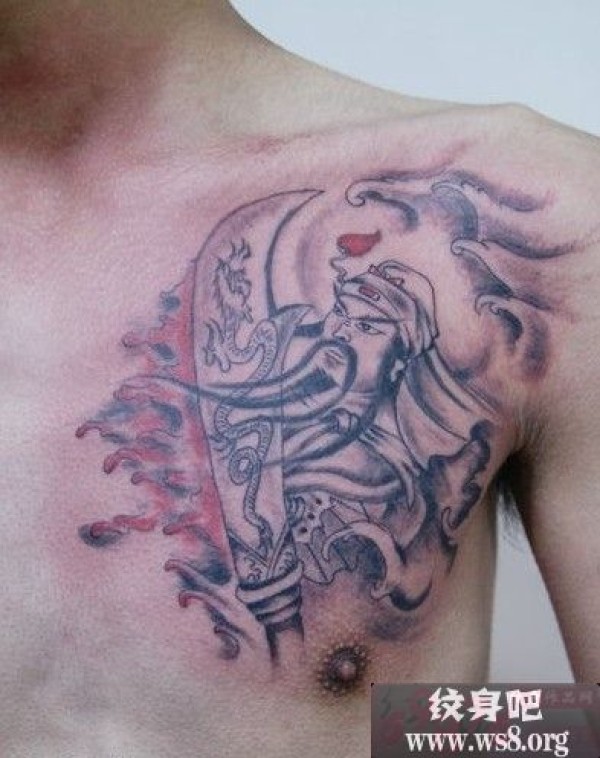 胸前关公耍大刀纹身图案图案_关公纹身图案大全_纹身图吧