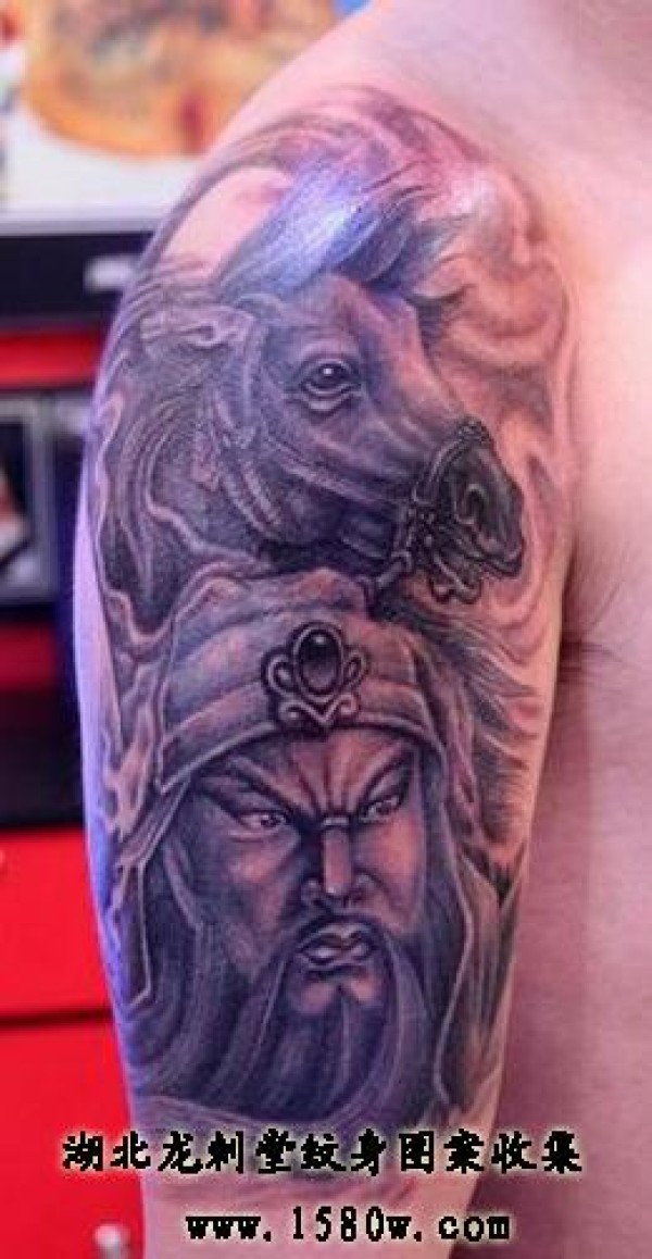 大臂赤兔马关公纹身_关公纹身图案大全_纹身图吧