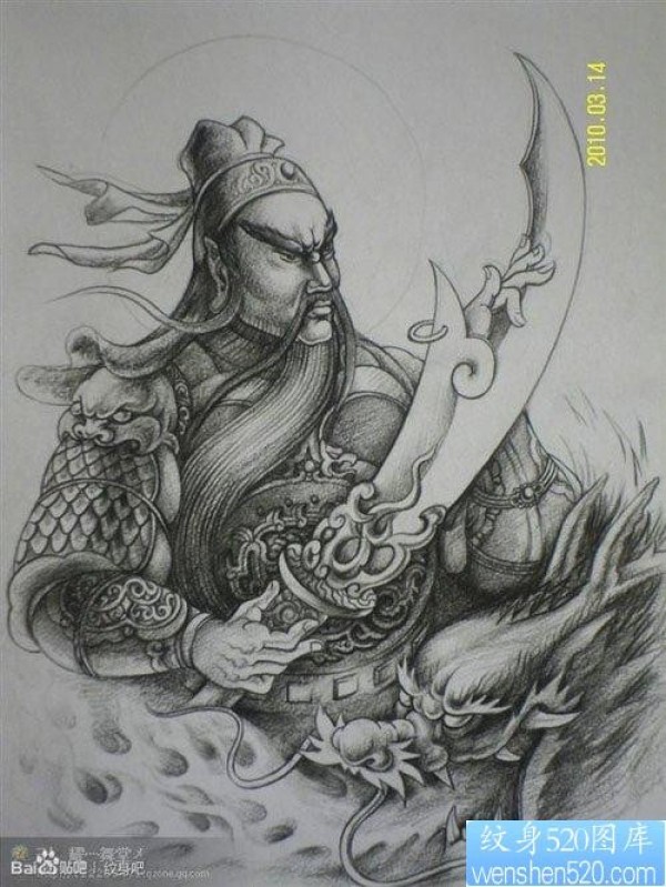 一幅霸气经典的黑白关公纹身手稿_关公纹身图案大全_纹身图吧