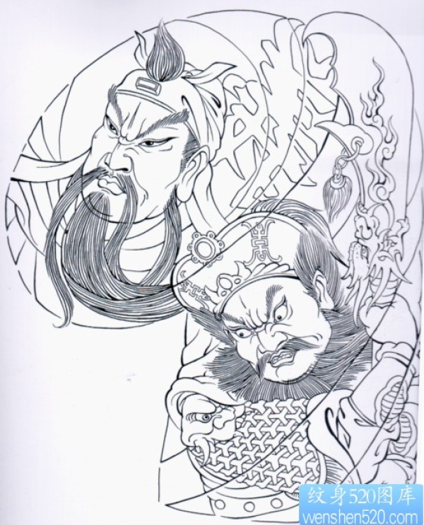 飞纹身手稿图片割线图线稿作品_关公纹身图案大全_纹身图吧