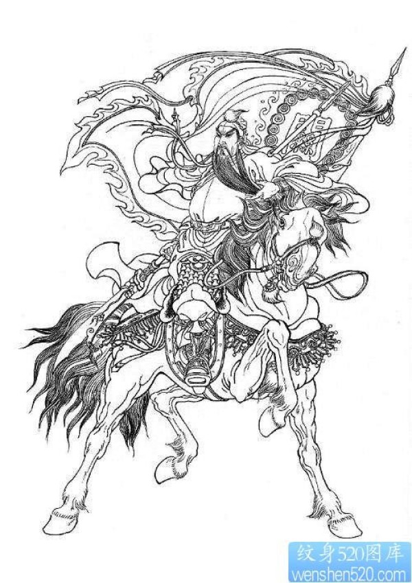 最经典的战马关公纹身图片线稿_关公纹身图案大全_纹身图吧
