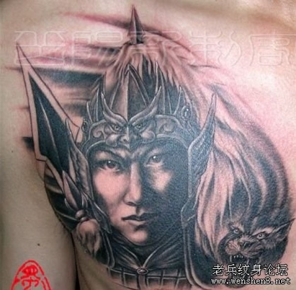 男生纹身图片之经典霸气帅气三国人物赵云赵子_关公纹身图案大全_纹身图吧