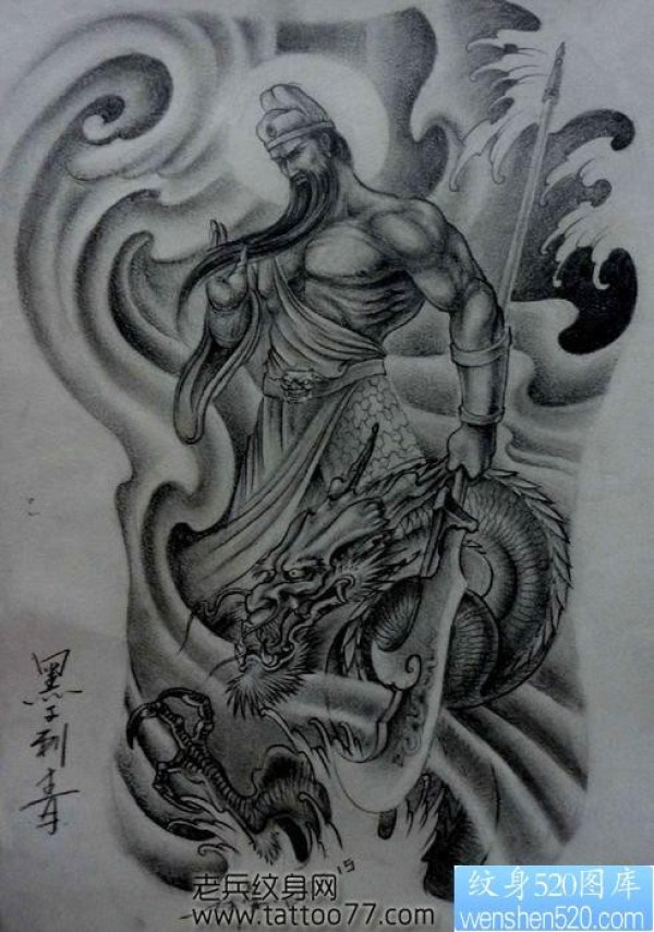 经典霸气的满背关公骑龙纹身手稿_关公纹身图案大全_纹身图吧