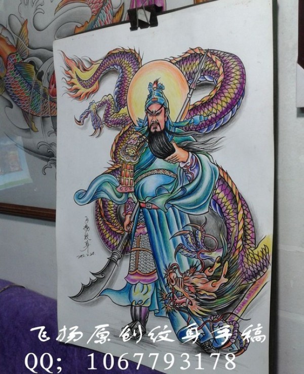 关羽降龙素材图案_关公纹身图案大全_纹身图吧