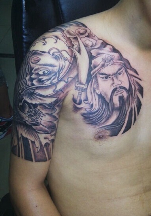 推荐几款非常凌厉的关公纹身图案过肩大刀关公_关公纹身图案大全_纹身图吧