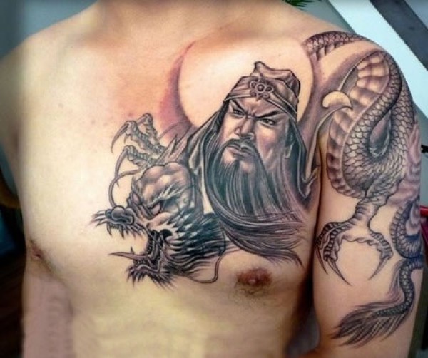 几款相似的胸部关公带过肩龙纹身图案非常威武_关公纹身图案大全_纹身图吧