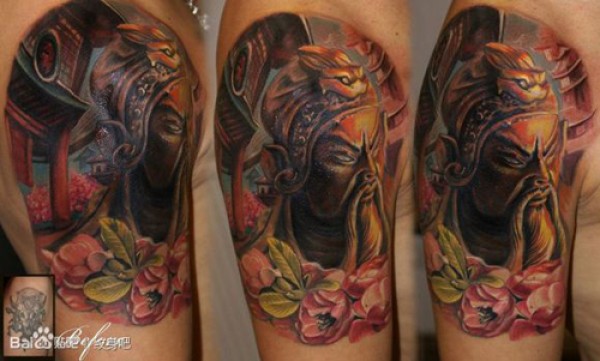 手臂经典帅气的彩色关公纹身图案_关公纹身图案大全_纹身图吧