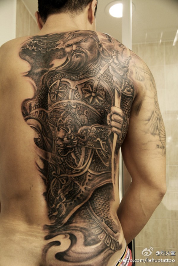 个性男人背部关公纹身图片_关公纹身图案大全_纹身图吧