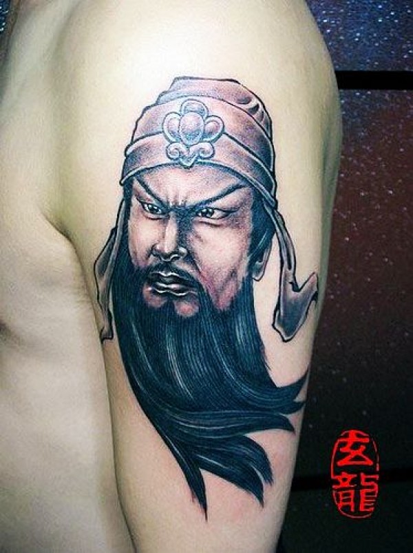 湖北荆州专业刺青店大臂关公肖像纹身图案图_关公纹身图案大全_纹身图吧