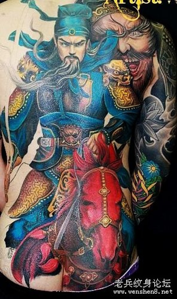 湖北咸宁专业刺青店满背彩色关公纹身图案图_关公纹身图案大全_纹身图吧