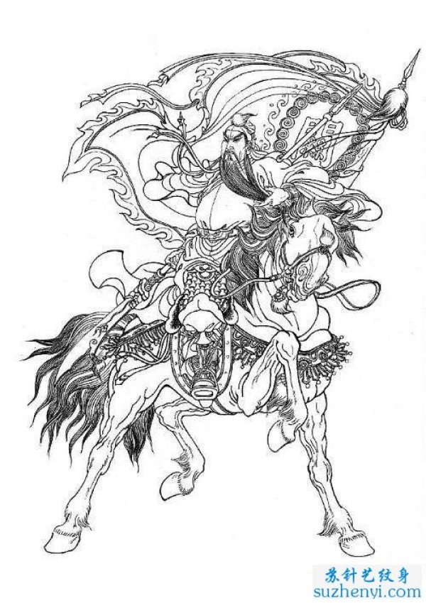 战马关公纹身图案线稿_关公纹身图案大全_纹身图吧