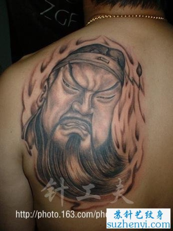 猛男背部关公纹身图片_关公纹身图案大全_纹身图吧