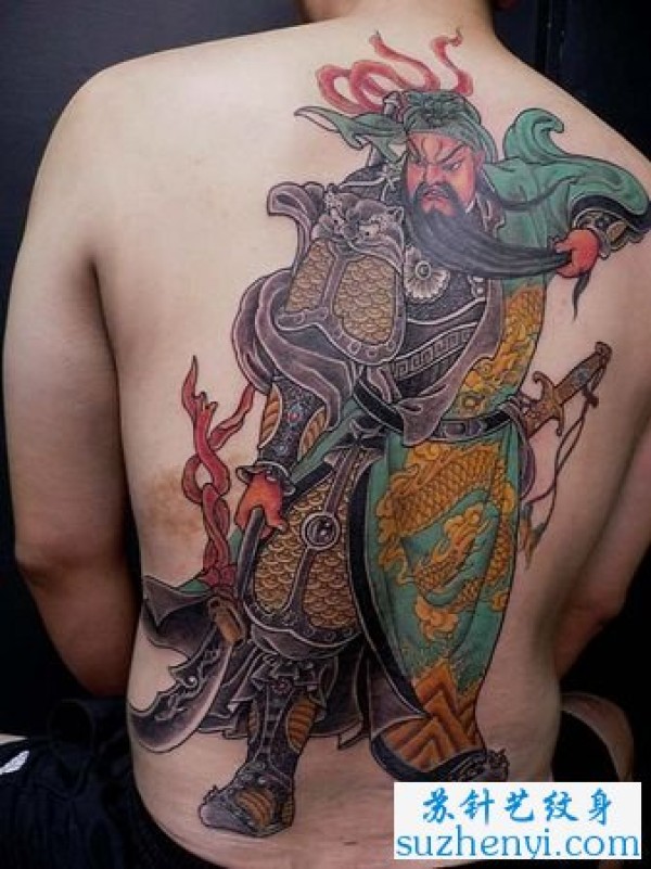 满背彩色关公纹身图案_关公纹身图案大全_纹身图吧