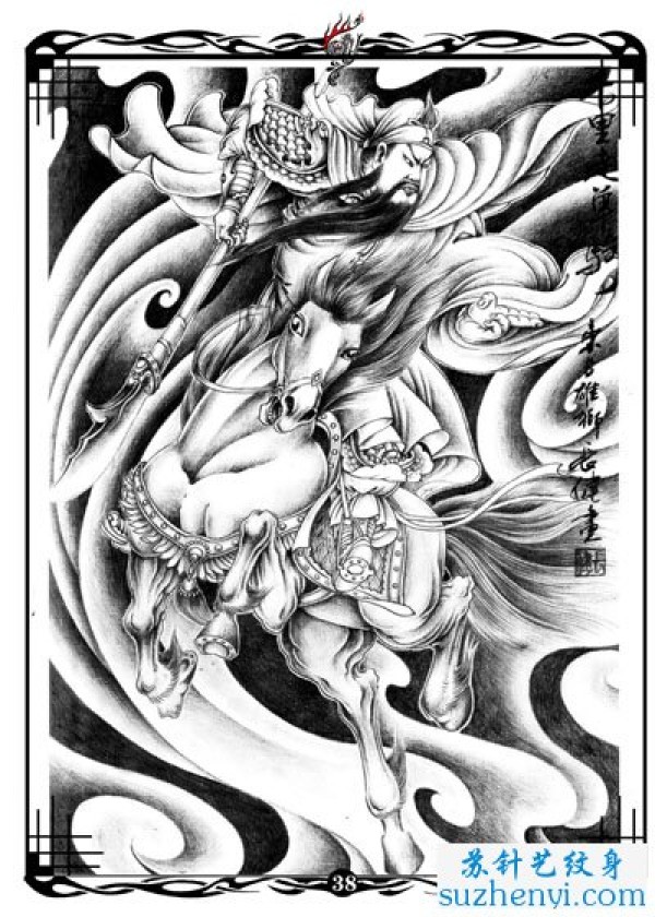 马背上的关羽纹身素材图_关公纹身图案大全_纹身图吧