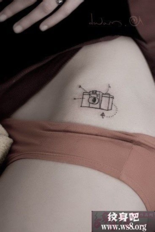 女孩腰部个性迷你音箱刺青图案_个性纹身图案大全_纹身图吧