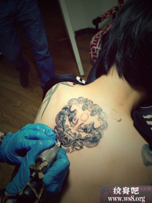 后背个性霸气唐狮子刺青过程图案_个性纹身图案大全_纹身图吧