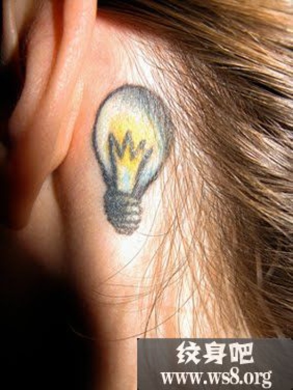 耳后个性时尚灯泡图案_个性纹身图案大全_纹身图吧