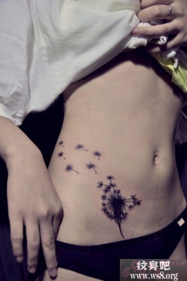 腹部唯美个性蒲公英刺青图案_个性纹身图案大全_纹身图吧