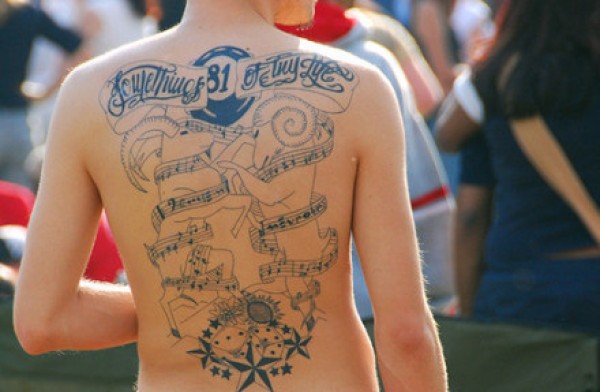 男人背部欧美个性乐谱纹身图案图片_个性纹身图案大全_纹身图吧