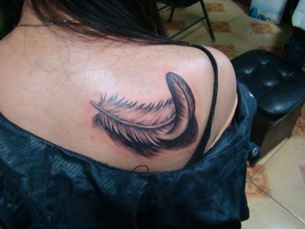 女性后肩部个性羽毛图案_个性纹身图案大全_纹身图吧