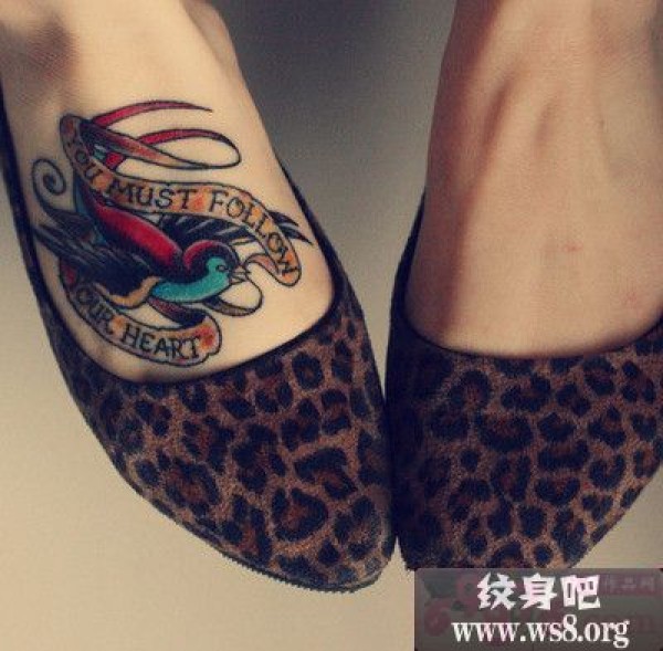 脚背个性彩色小鸟纹身图案_个性纹身图案大全_纹身图吧