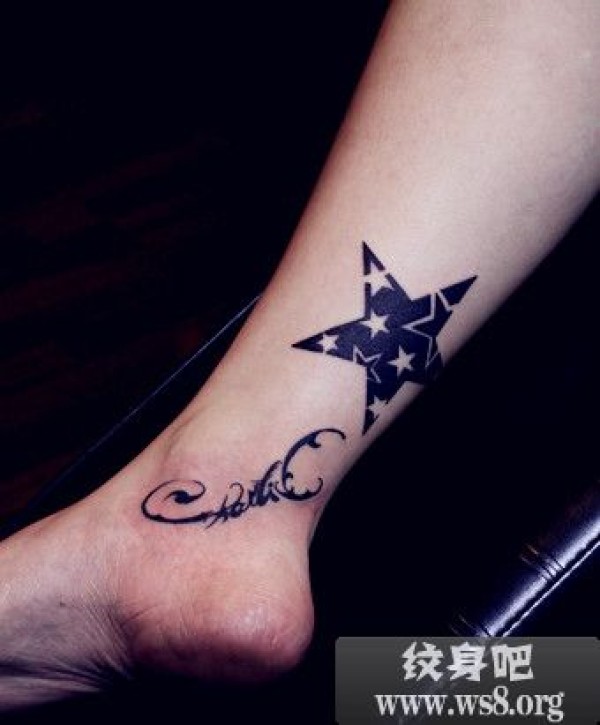 腿部个性星星时尚纹身图案_个性纹身图案大全_纹身图吧