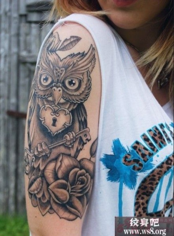 手臂个性猫头鹰纹身图案_个性纹身图案大全_纹身图吧