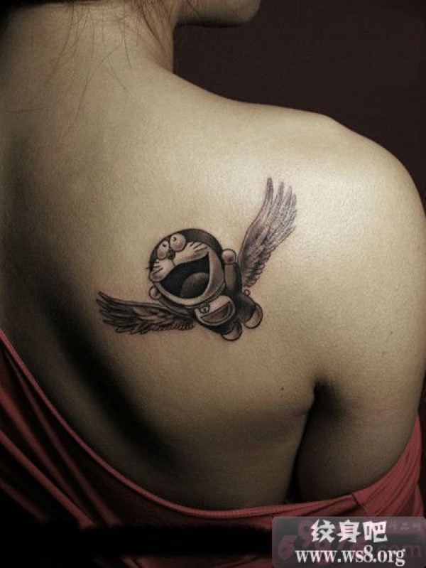后背复古个性机器猫图案_个性纹身图案大全_纹身图吧