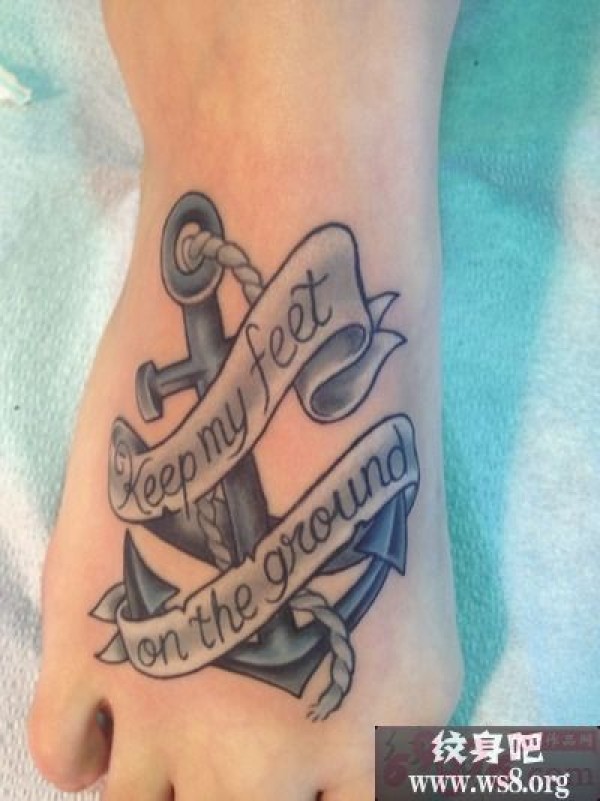脚背船锚个性时尚刺青图案_个性纹身图案大全_纹身图吧