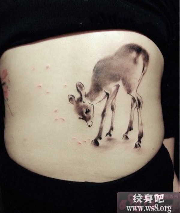 侧腰小鹿国画个性时尚刺青图案_个性纹身图案大全_纹身图吧