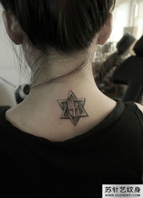 六角芒星后颈纹身图案_个性纹身图案大全_纹身图吧